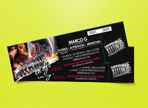 Billets imprimés pleine couleurs sur carton 14 pts C2C avec numérotation de 1 numéro inclus et des options comme la perforation et la numérotation multiple