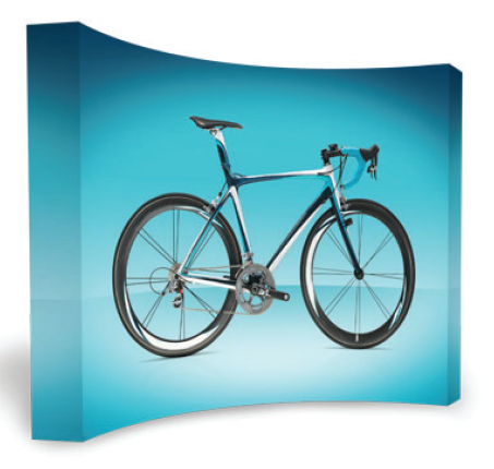 Structure pliable en aluminium, Impression couleur sur tissu, poids total entre 14 e t21.5 8 kg selon le format choisi, monté en 2minutes, Sac de transport en tissus inclus. Aussi disponible en option : Lampes Halogène